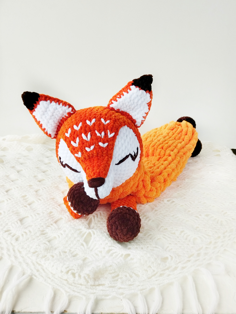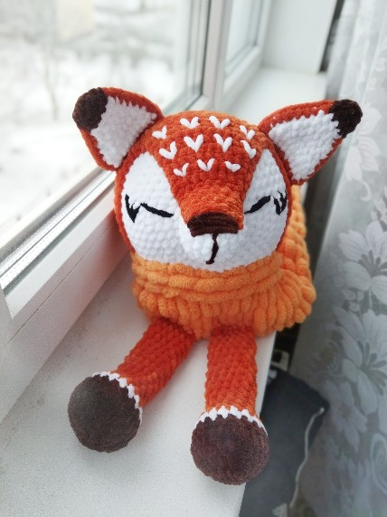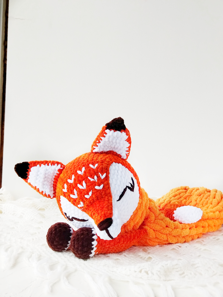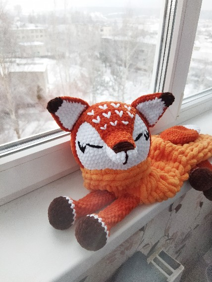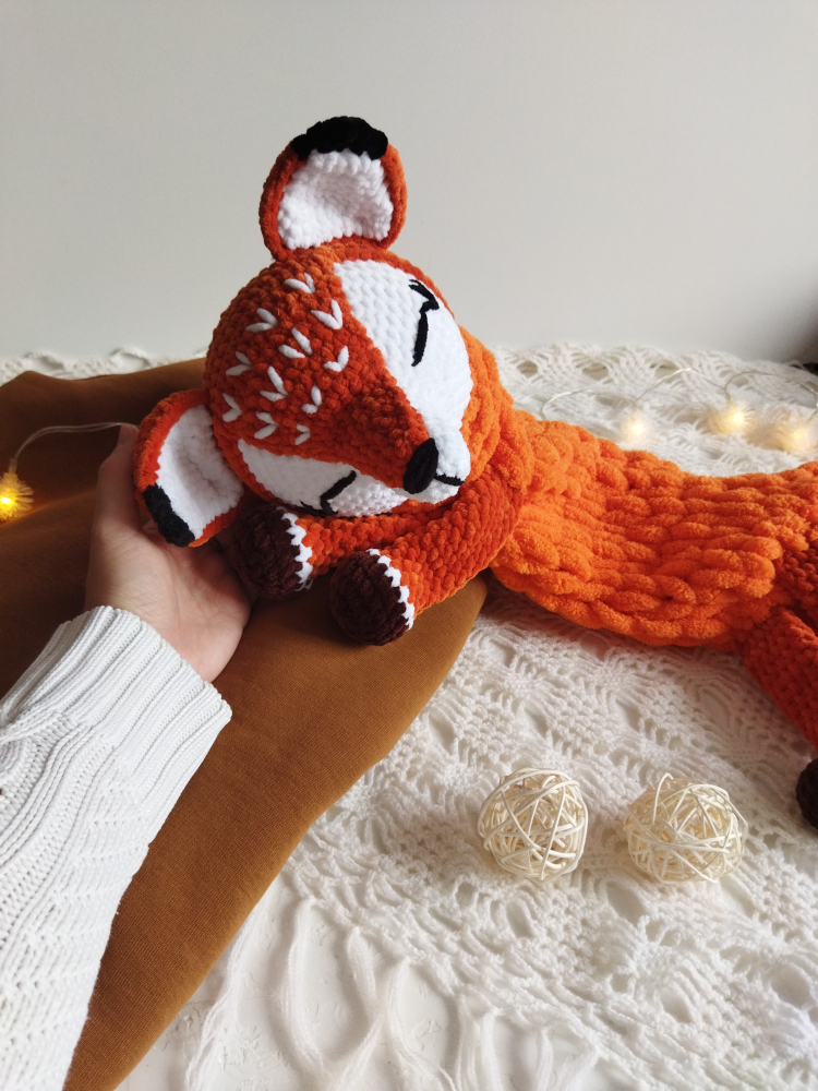Вязаный лисенок отлично подходит как комфортер или ночной друг, который создаст ощущение тепла и безопасности. Внутрь можно складывать детскую пижаму, секреты, любимые игрушки или даже сладости — это делает игру еще более увлекательной и помогает малышу чувствовать себя защищенным. Такой лисенок станет не только мягким спутником для сна, но и уютным аксессуаром для ночных обнимашек.