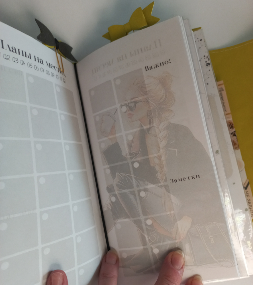 Его элегантный дизайн и тактильно приятный материал превращают планирование в истинное удовольствие. Внутри вы найдете удобную структуру для записи дел, целей и важных заметок. Разделители по месяцам облегчают навигацию, а компактный размер позволяет всегда держать его под рукой.