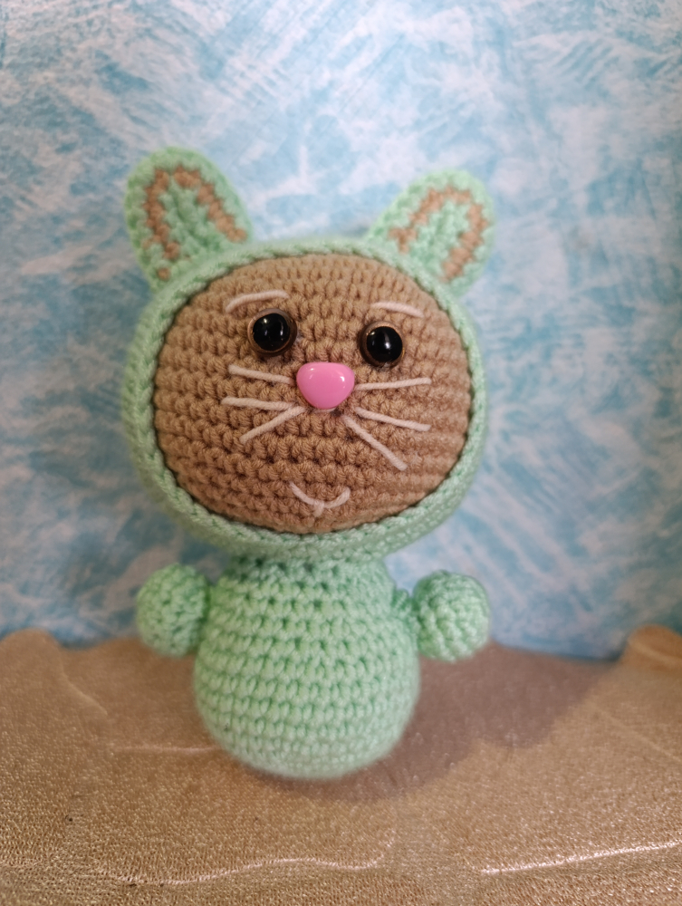 Игрушка ростом около 20 см,глазки и носик приклеены. Игрушка яркого цвета.