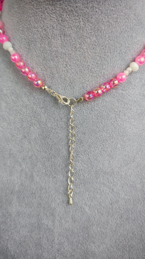 Колье из пластиковых бусин. Длина 38см +5см удлинительной цепочки из бижутерного сплава. Колье собрано на силиконовую резинку.