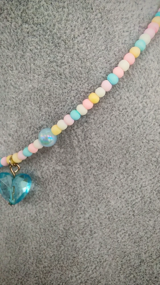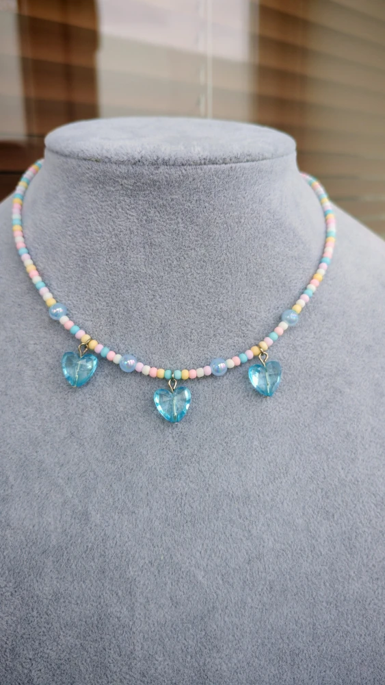 Колье из матовых бусин с полупрозрачными сердцами. Пластик. Длина 40см +5см удлинительной цепочки из бижутерного сплава.