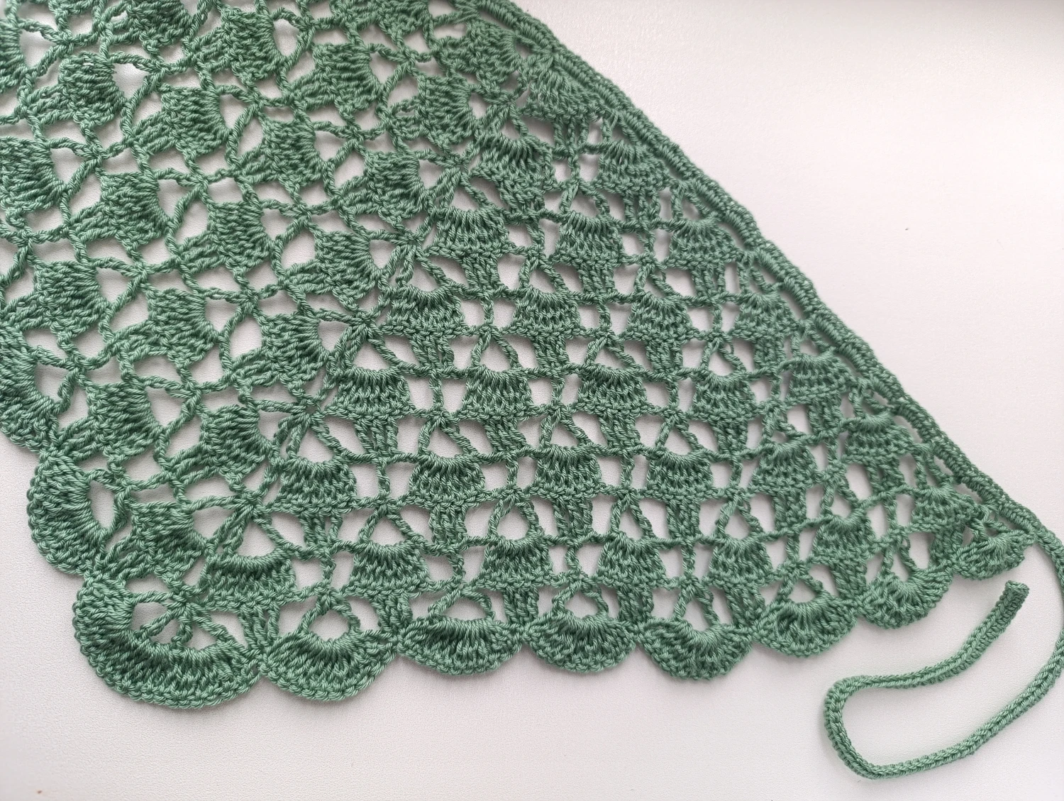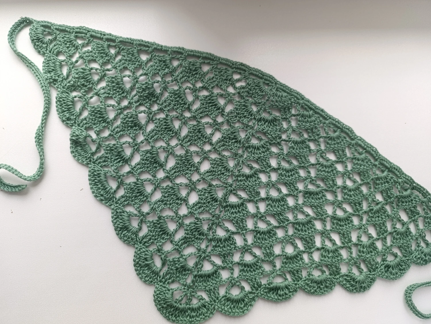 Косынка 62 см в длину без тесемок,в высоту 26 см. Связана ажурным узором,нитки можно гладить утюгом,,стирать в ручную в теплой воде.