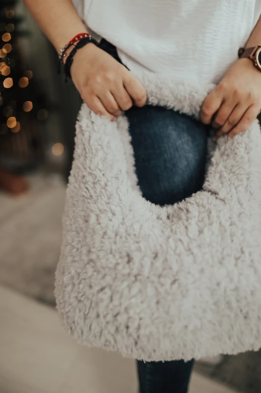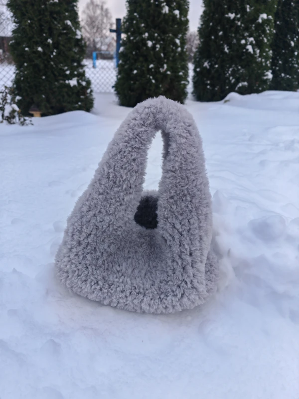 Меховая сумочка крючком. Её хочется трогать постоянно. А зимой можно и руки погреть.