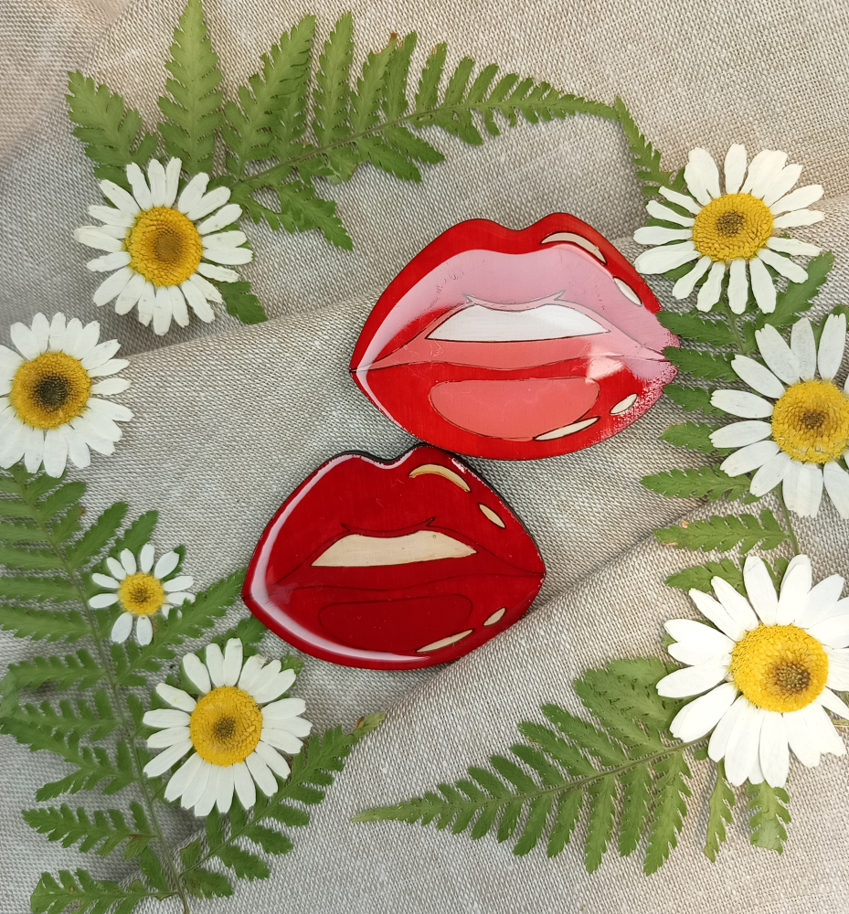 Брошь "Губки" выполнена из дерева, расписана акриловыми красками и покрыта эпоксидной смолой вручную.